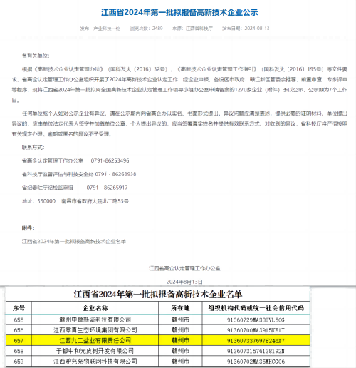 8月13日,江西省高企认定管理工作小组办公室传来喜讯,必赢官方网站成功通过2024年第一批高新技术企业认定。