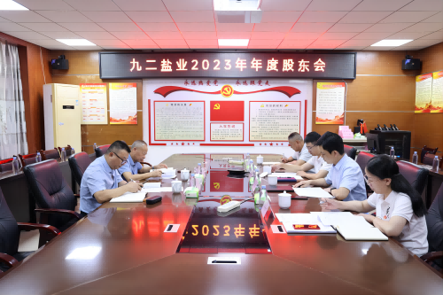 8月6日,九二盐业在公司四楼会议室召开2023年年度股东会。雪天盐业股东代表王韬、小山投资股东代表吴森林出席会议。九二盐业党委书记、董事长朱凯、总经理李威烨、监事会主席赖茂发参加会议,公司党委委员、财务总监、董事会秘书周艳四列席会议。