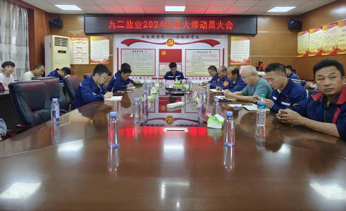 2024年8月2日上午,九二盐业组织召开2024年度大修动员大会,会议由公司党委委员、副总经理王小斌主持,公司党委书记、董事长朱凯出席会议并讲话。